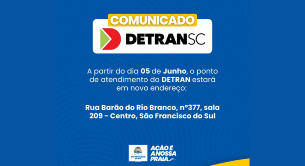 DETRAN/SC EM SÃO FRANCISCO DO SUL PASSARÁ A ATENDER EM NOVO ENDEREÇO